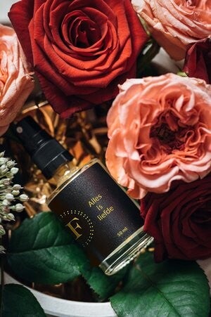 De soulspray "Alles is liefde" is zorgvuldig samengesteld met tuberoos, damascus roos, vetiver, petitgrain, verveine, jeneverbes en jasmijn, allemaal doordrenkt met liefdevolle intenties.